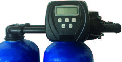 Addolcitore duplex con valvola elettronica da 1” a quattro vie per il controllo di due colonne. Elettronica con partenza della rigenerazione a